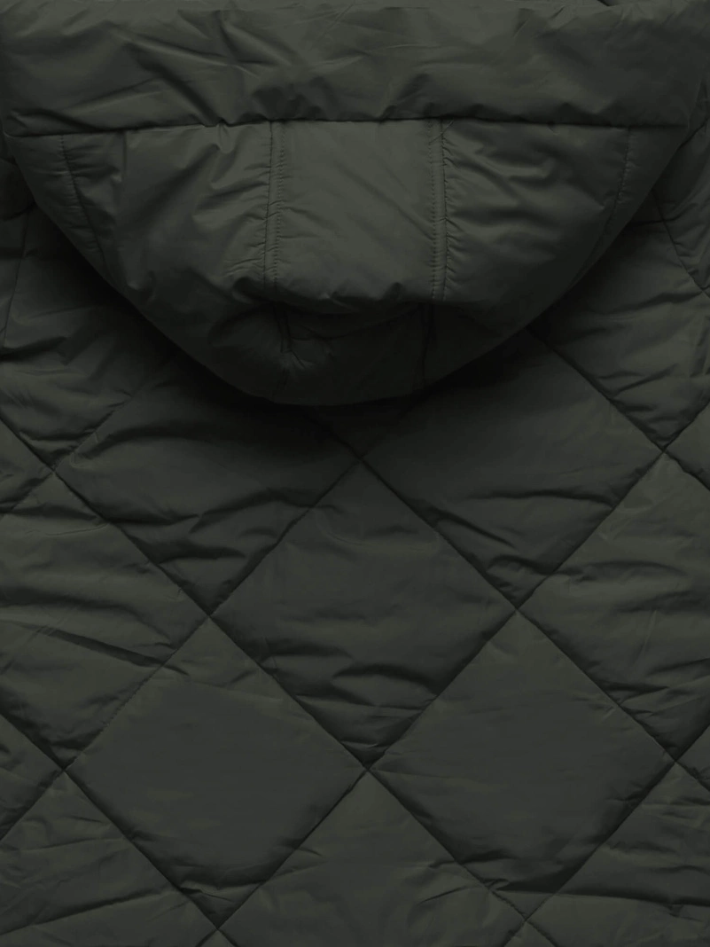 Army pikowana w karo damska kurtka płaszczyk zimowy z kapturem
