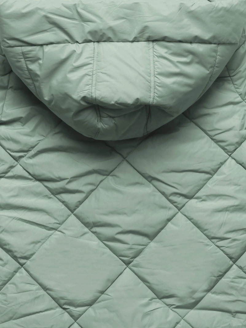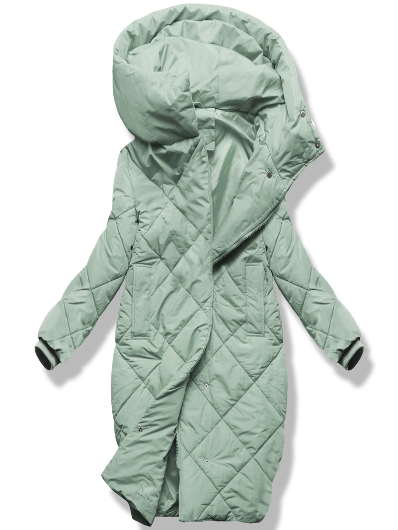 Opinie o Miętowa pikowana w karo damska kurtka płaszczyk zimowy z kapturem