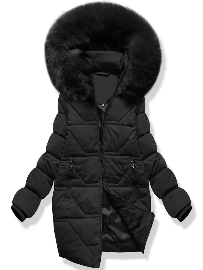 Opinie o Czarna pikowana zimowa kurtka z kapturem