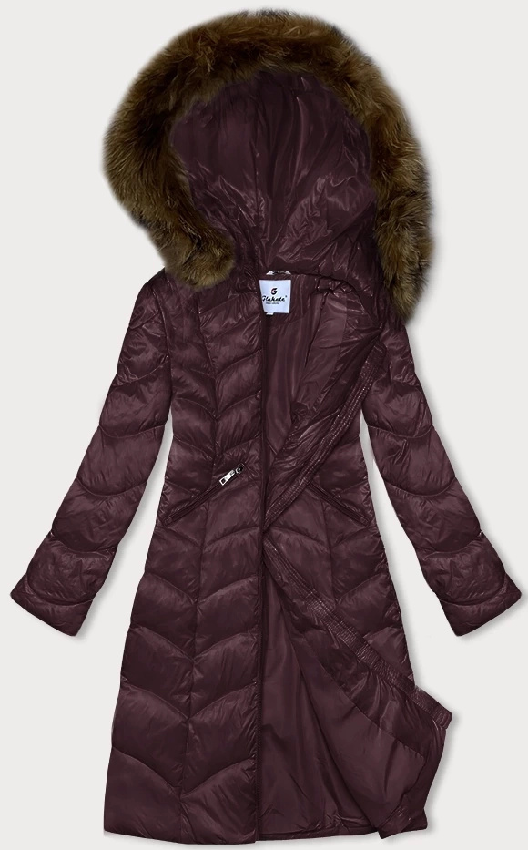 Opinie o Bordowa długa kurtka pikowana płaszcz z kapturem