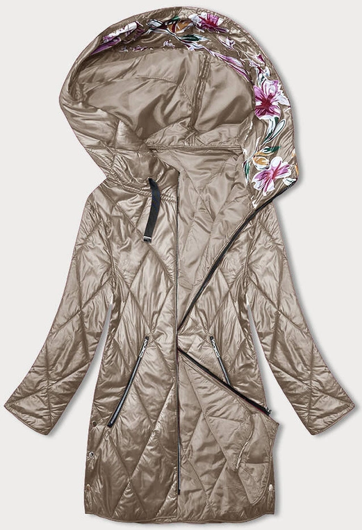 - Przejściowa pikowana w karo kurtka damska z motywem kwiatowym plus size