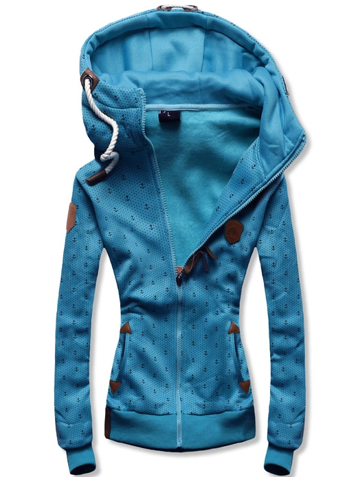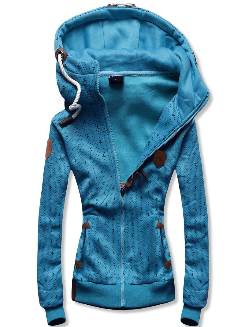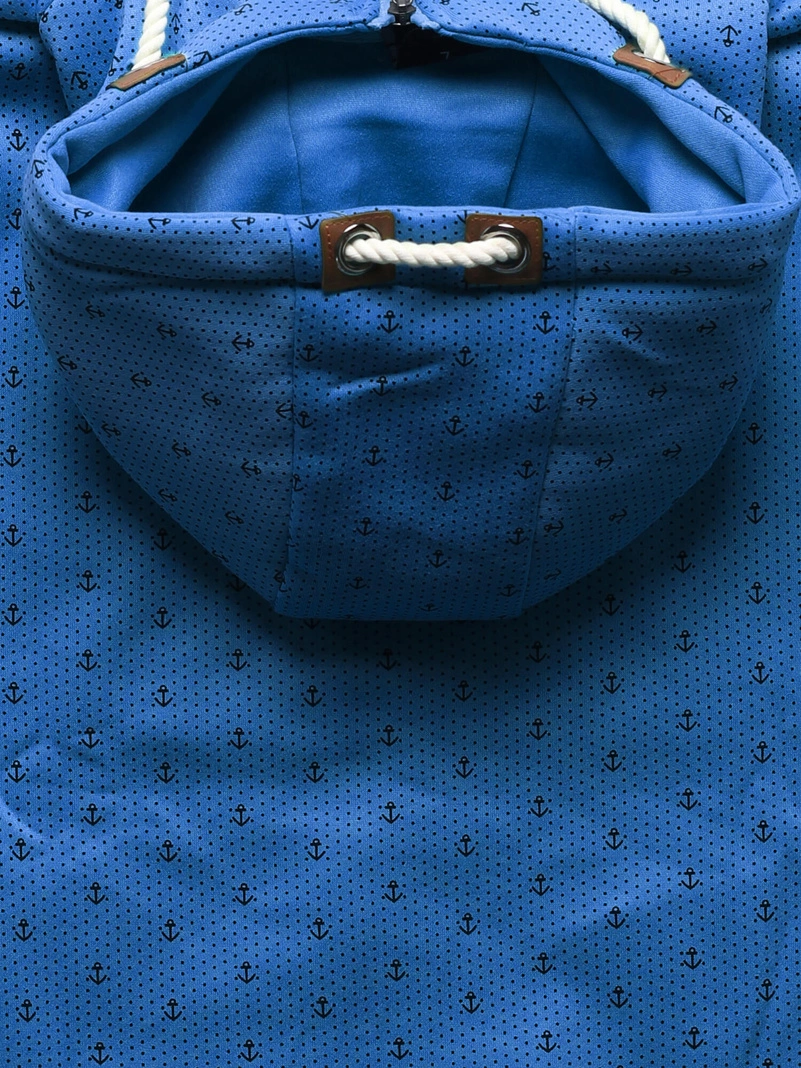 Niebieska damska rozpinana bluza z kapturem w kotwiczki