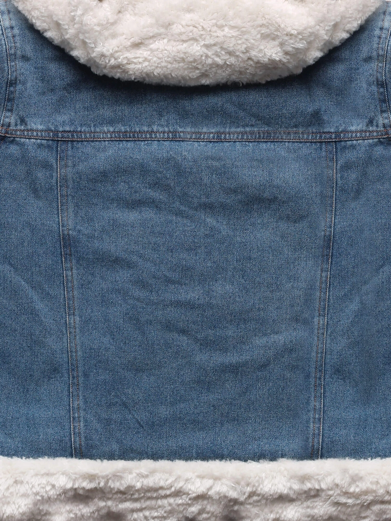 - Jeansowa krótka damska kurtka ocieplana futerkiem