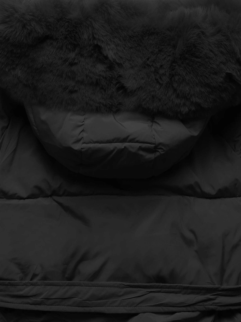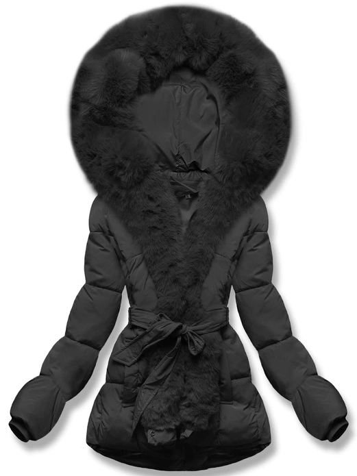 Czarna fenomenalna kurtka damska z paskiem + futro