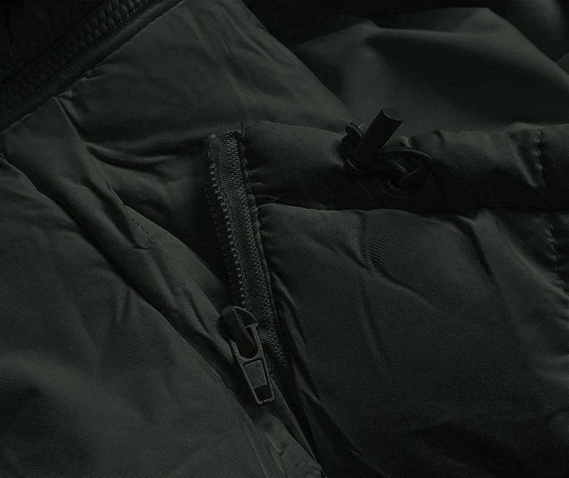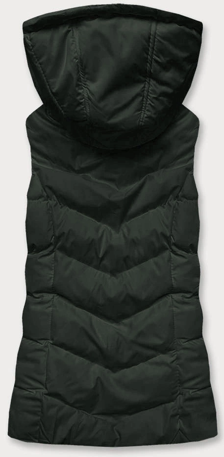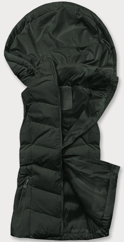 Khaki puchowy pikowany bezrękawnik kamizelka z kapturem