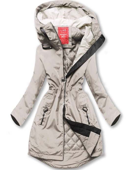 Jasnobeżowa czaderska damska przejściowa kurtka parka z kapturem