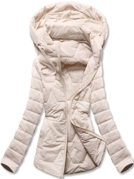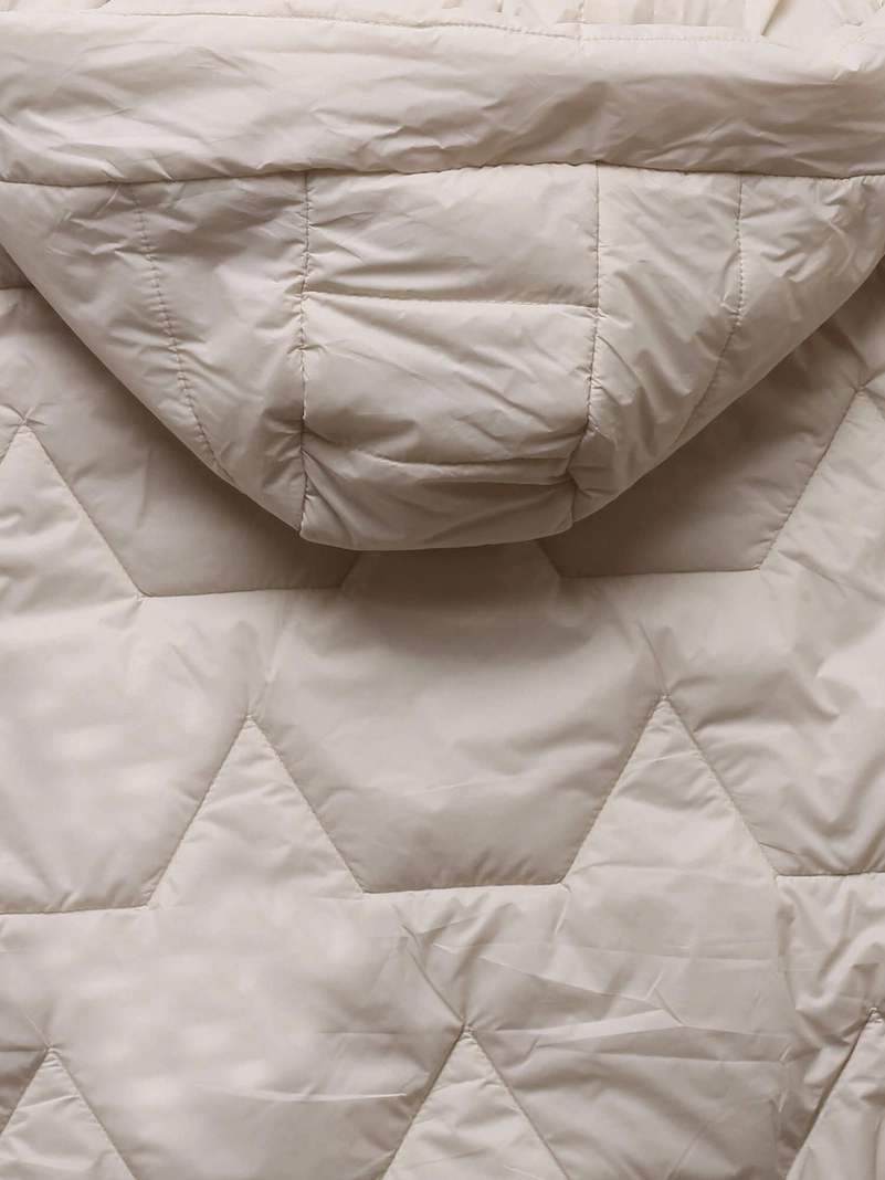 Beżowa lekka pikowana przejściowa kurtka z kapturem