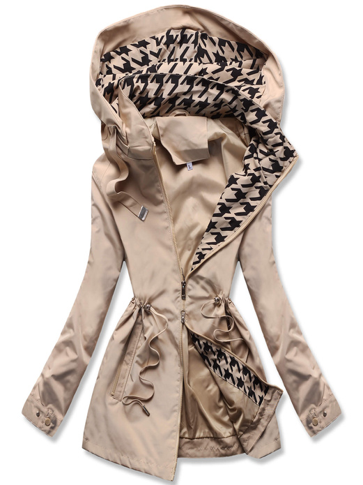 Beżowa genialna kurtka z odpinanym kapturem w pepitkę