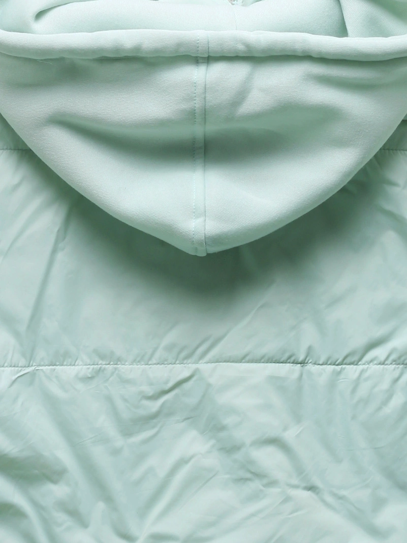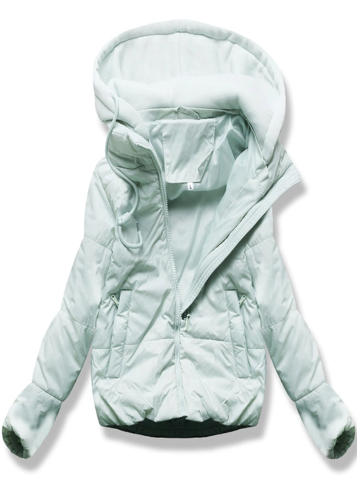 Opinie o Miętowa pikowana przejściowa kurtka z dresowym kapturem