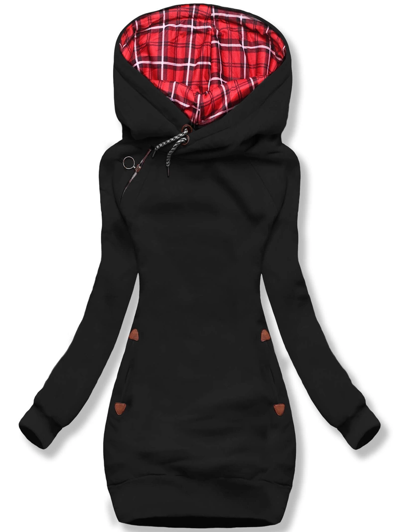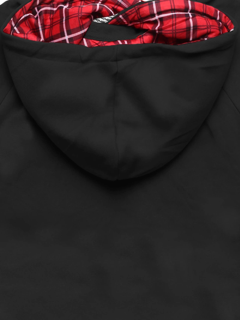 - Bluza posiada kaptur tworzący genialny kołnierz z podszewką w kratę