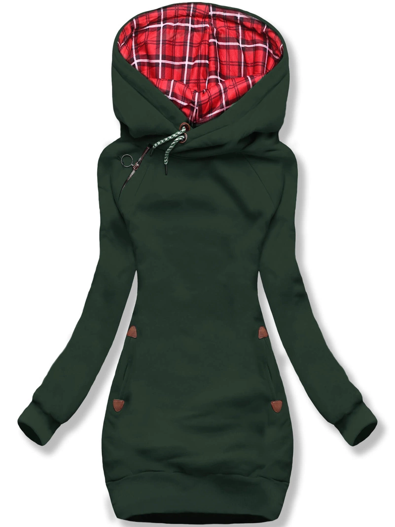 - Bluza posiada kaptur tworzący genialny kołnierz z podszewką w kratę