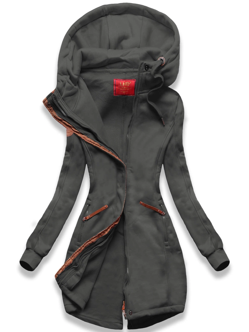 Grafitowa ciepła długa bluza damska ze wstawką