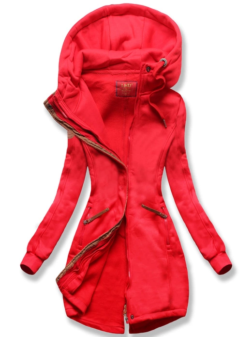 Czerwona ciepła długa bluza damska ze wstawką