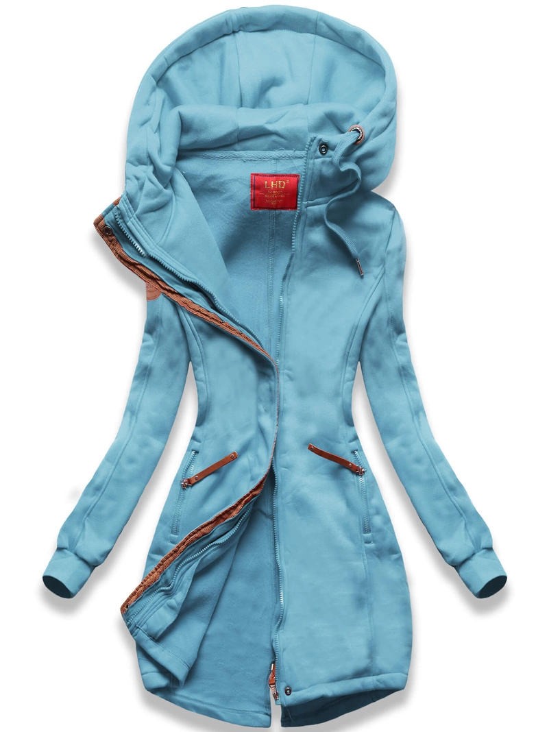 Opinie o Błękitna ciepła długa bluza damska ze wstawką