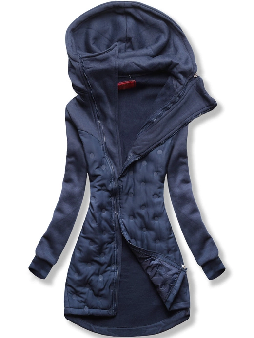 Granatowa damska bluza ze stójką łączone materiały
