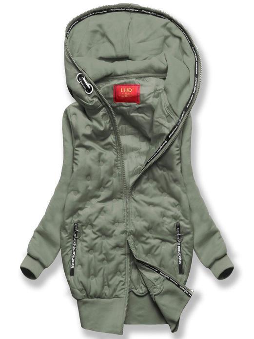 Opinie o Szarozielona fenomenalna bluza kurtka z łączonych materiałów z kapturem