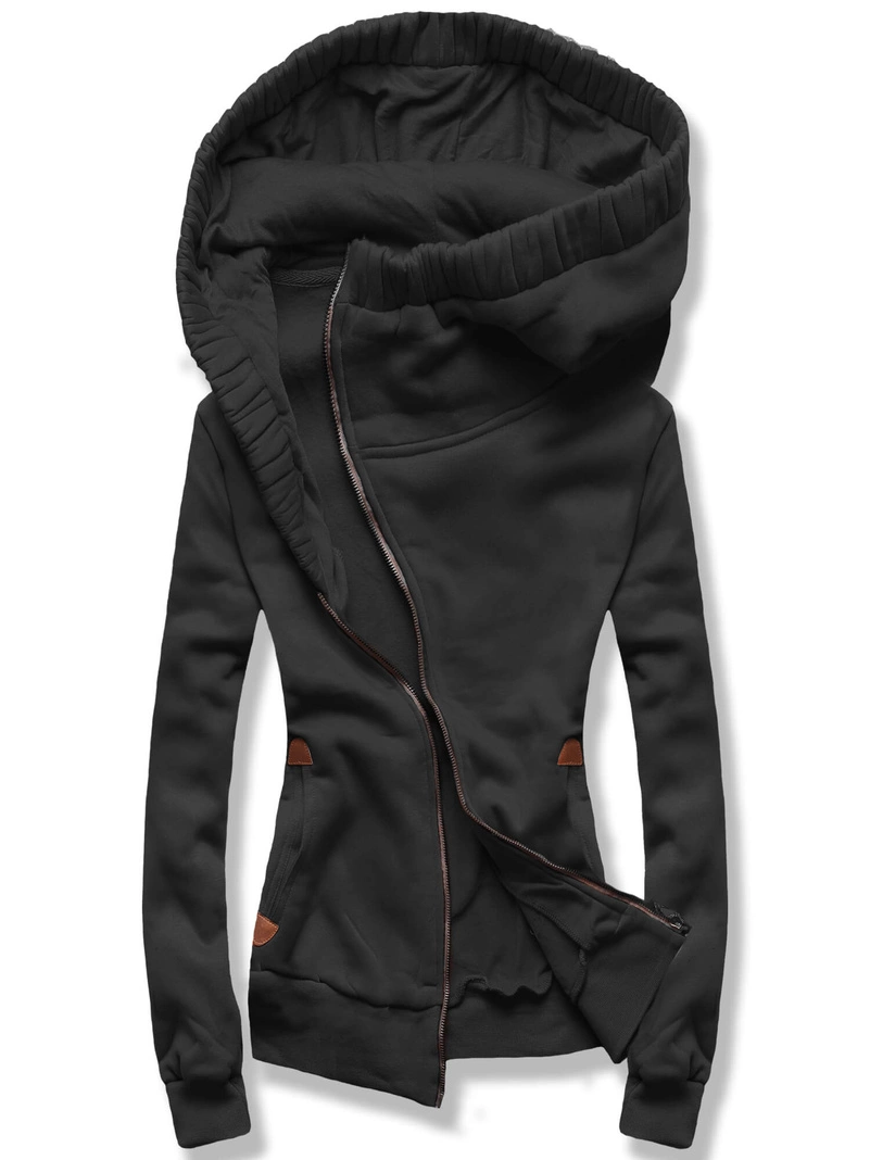 Opinie o Czarna damska bluza z asymetrycznym suwakiem