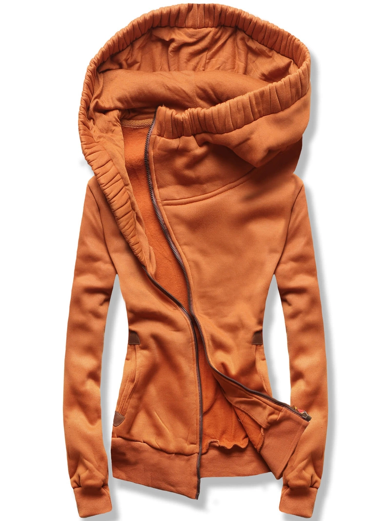 Karmelowa damska bluza z asymetrycznym suwakiem