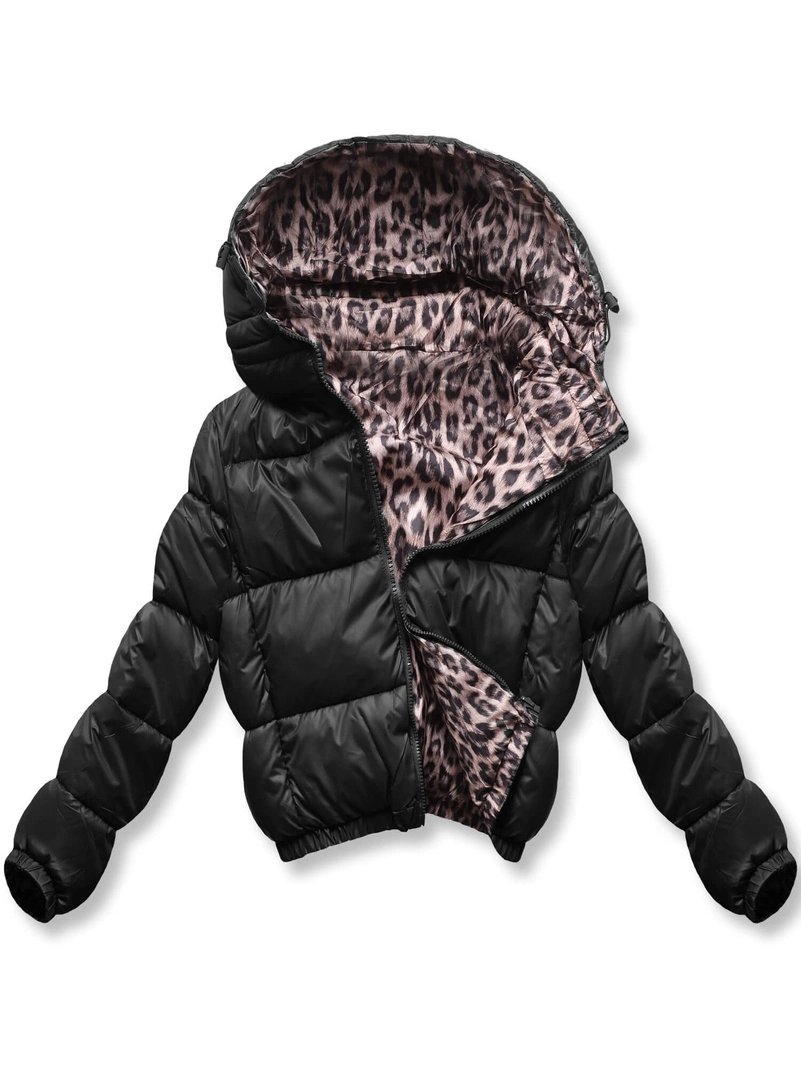 Opinie o Czarna dwustronna kurtka damska pikowana panterka