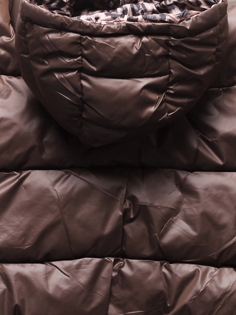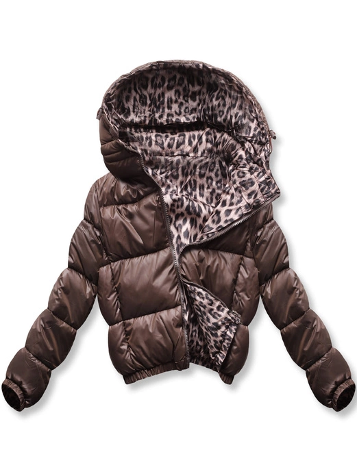 Czekoladowa dwustronna kurtka damska pikowana panterka