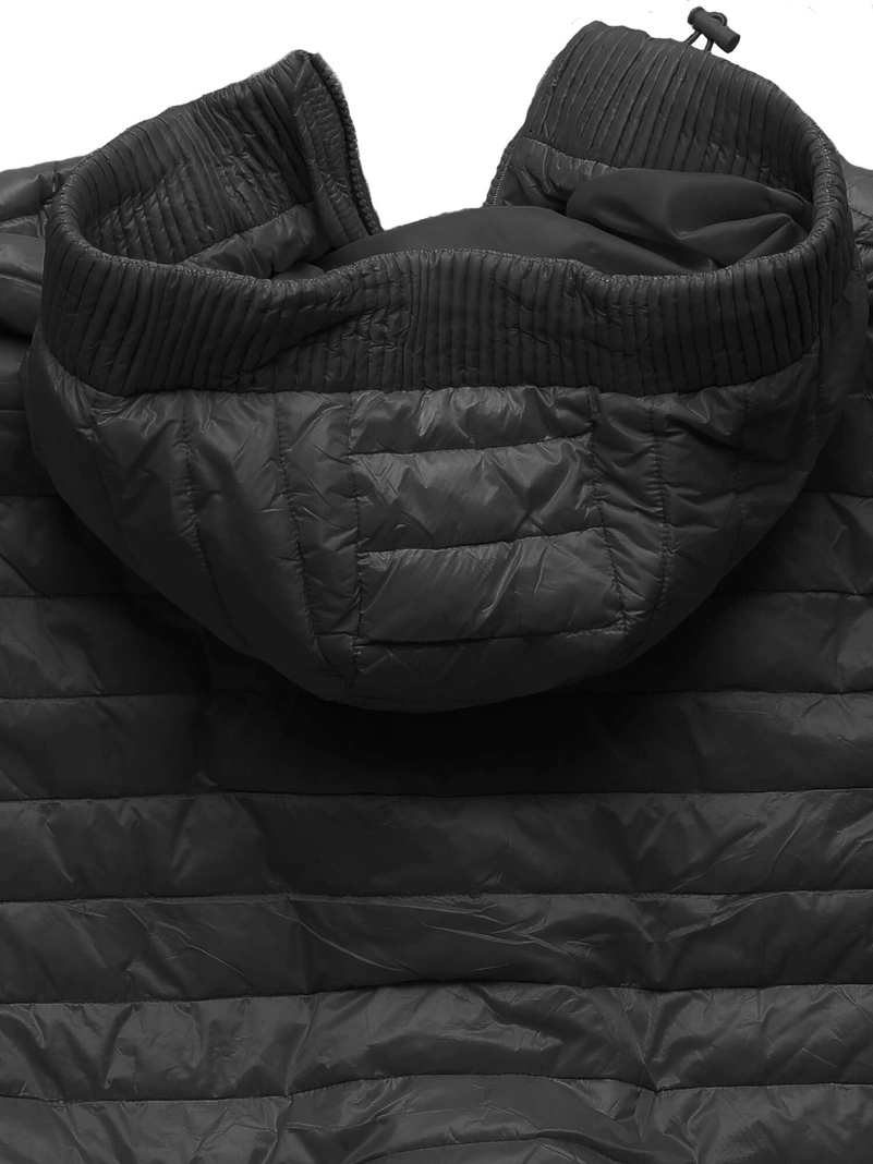Opinie o Czarna trapezowa pikowana unikalna kurtka z dzianinowymi rękawami