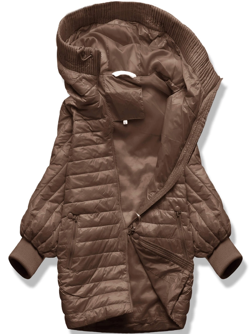 Opinie o Brązowa trapezowa pikowana unikalna kurtka z dzianinowymi rękawami