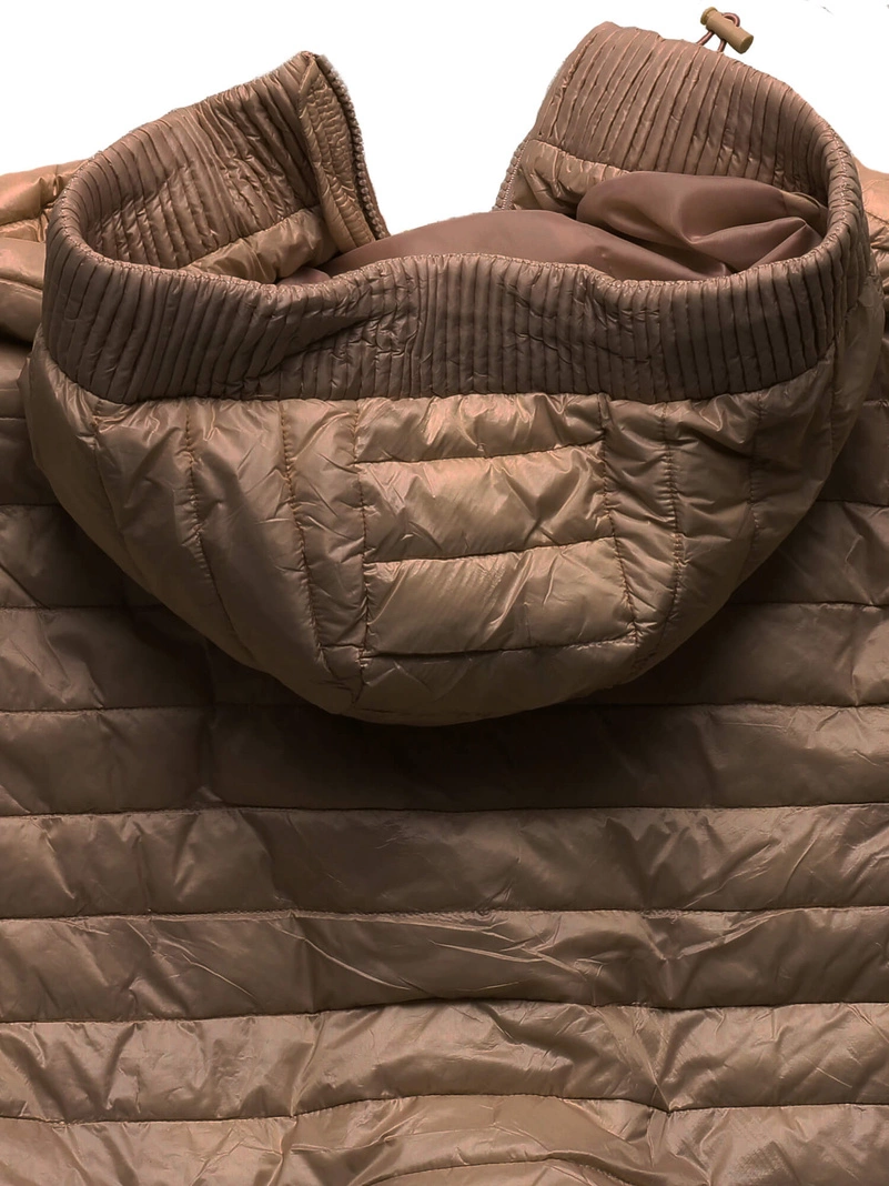 - Trapezowa pikowana przejściowa kurtka z dzianinowymi rękawami