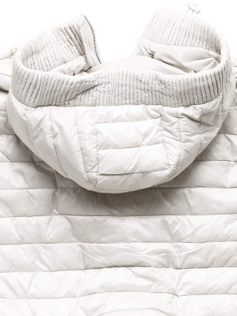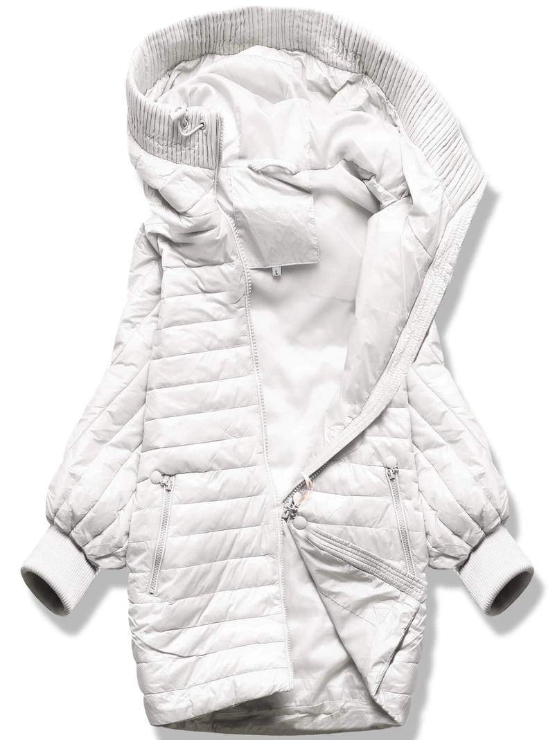Ecru trapezowa pikowana unikalna kurtka z dzianinowymi rękawami