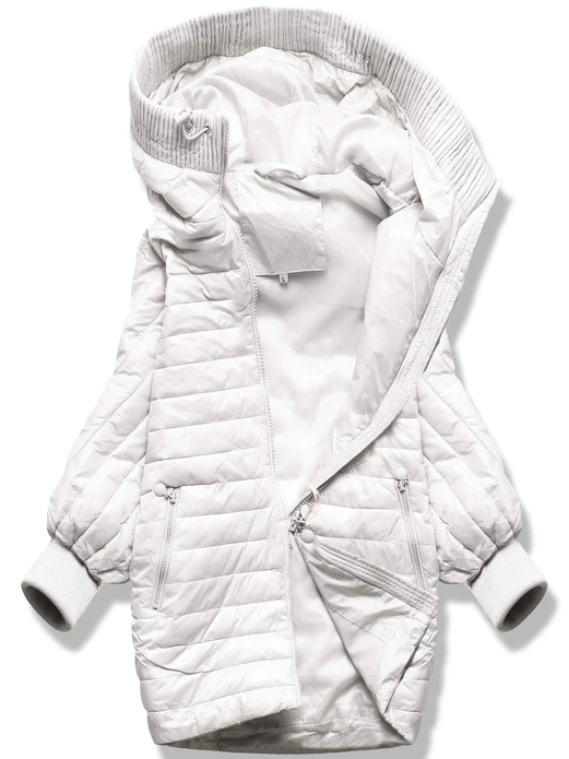 - Trapezowa pikowana przejściowa kurtka z dzianinowymi rękawami