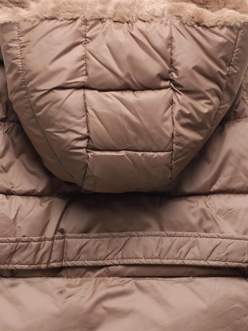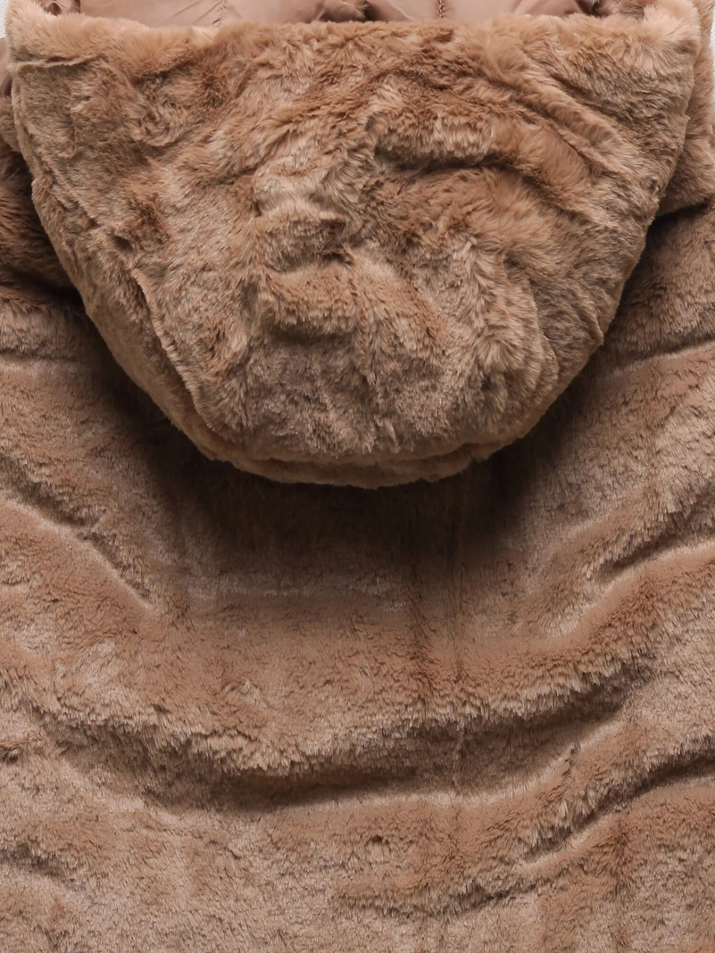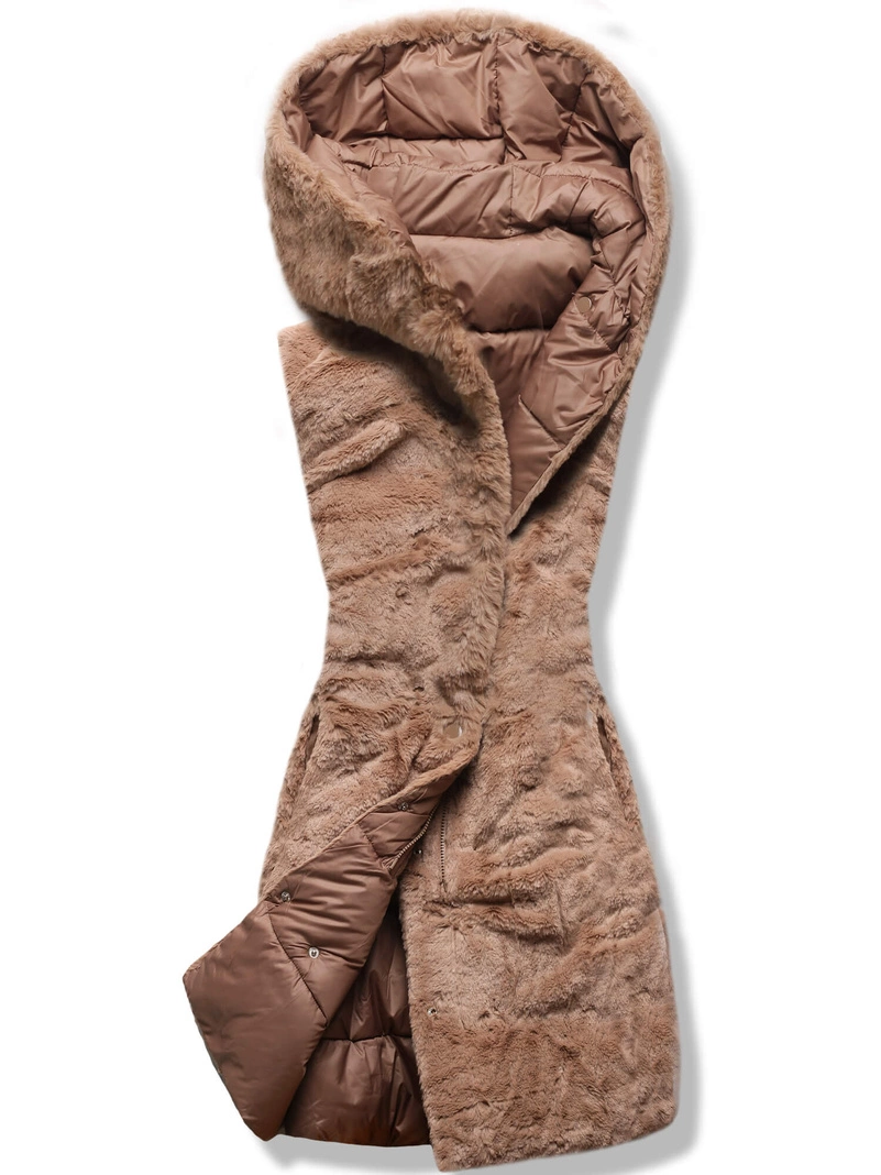 - Dwustronny damski pikowany bezrękawnik z kapturem na futrze