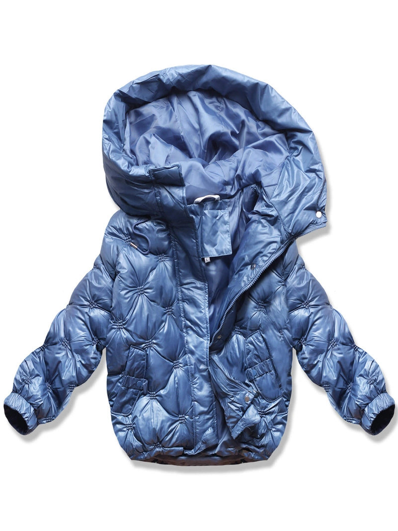 Opinie o Niebieska luźna pikowana damska przejściowa kurtka