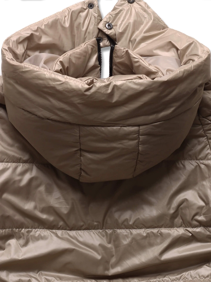 Beżowa damska pikowana kurtka przejściowa ze stójką