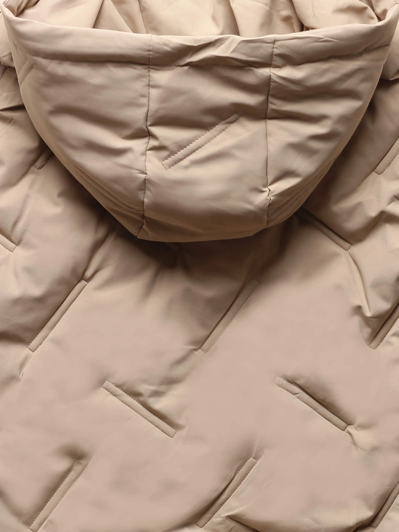 Beżowy pikowany damski bezrękawnik kamizelka z kapturem