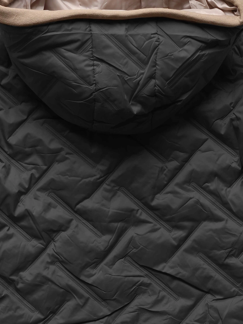 Czarna damska pikowana przejściowa kurtka z naszywką
