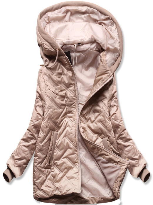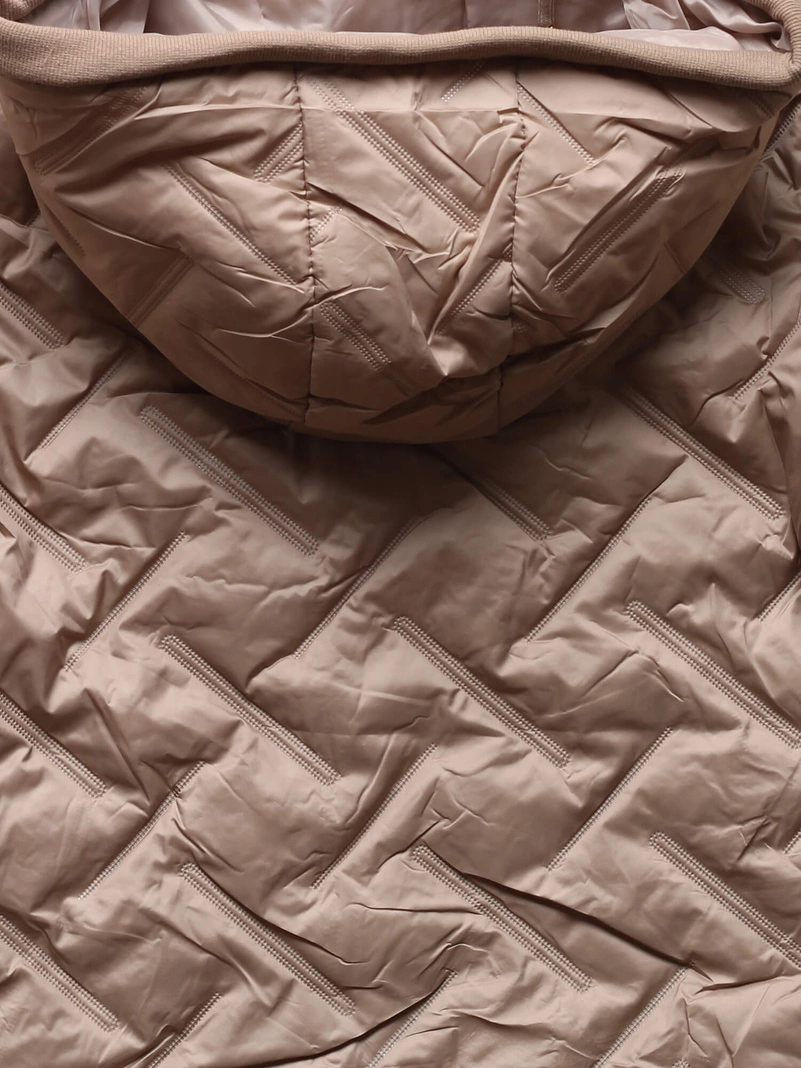 Beżowa damska pikowana przejściowa kurtka z naszywką