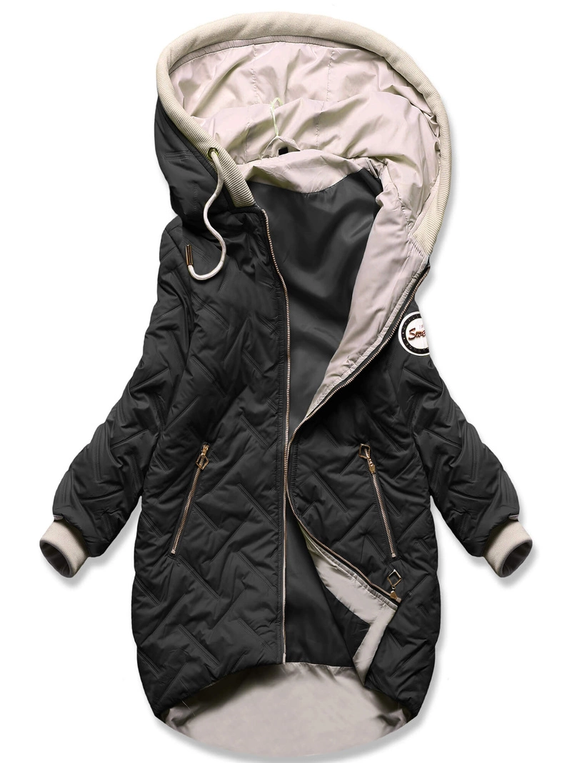 - Damska pikowana przejściowa kurtka dłuższa z tyłu