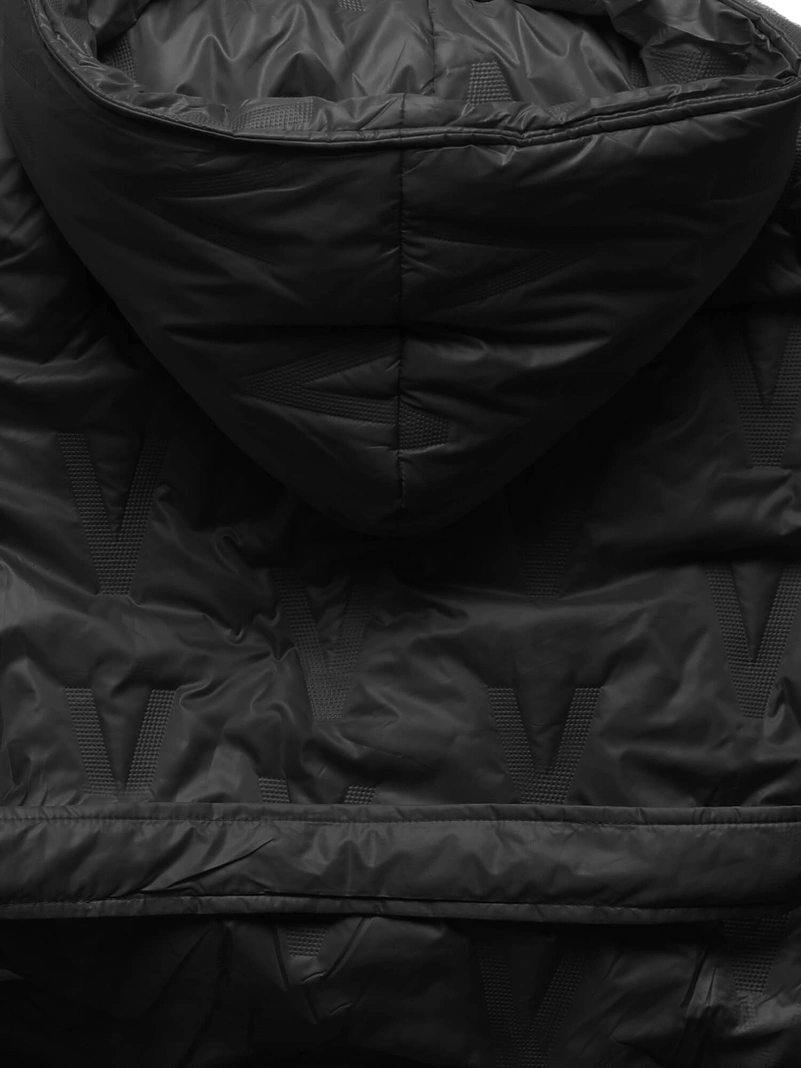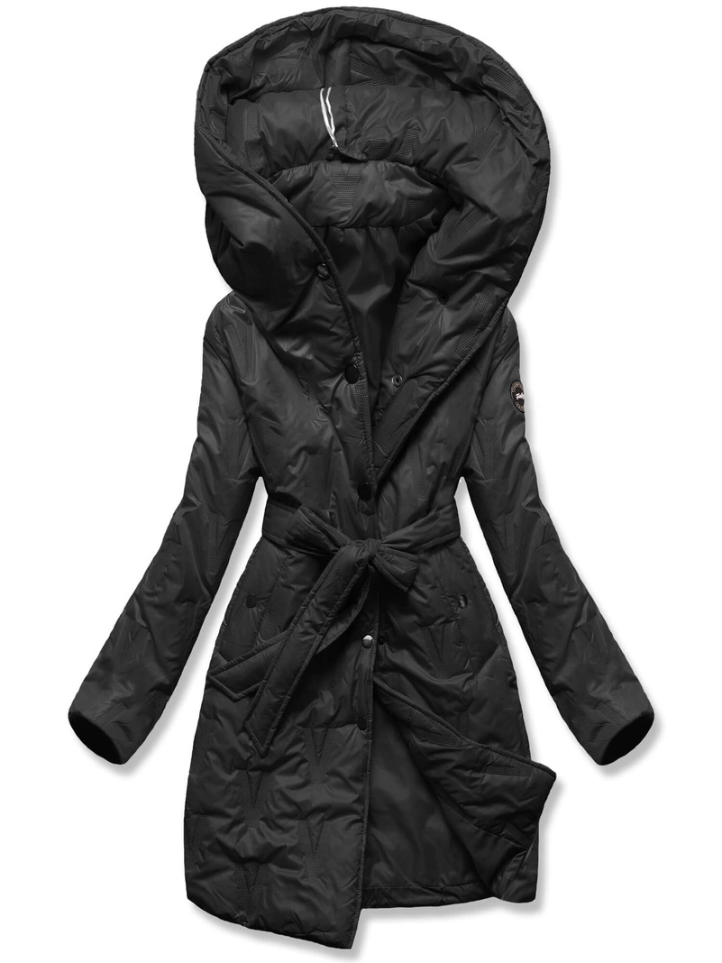 Opinie o Czarny pikowany płaszcz zapinany na zatrzaski z paskiem