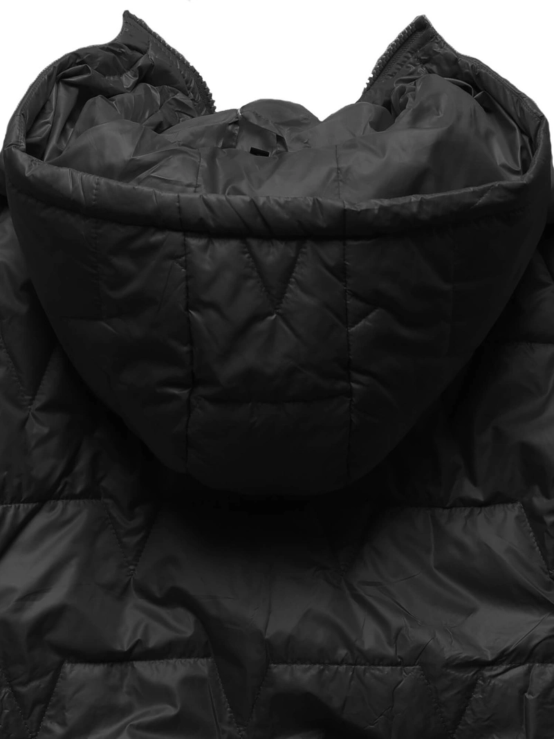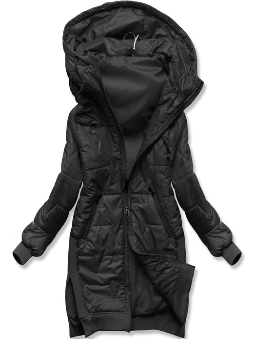 Czarna pikowana damska kurtka z bocznymi rozcięciami