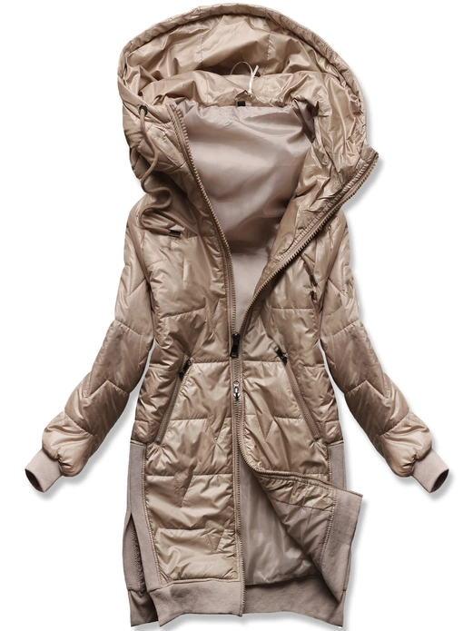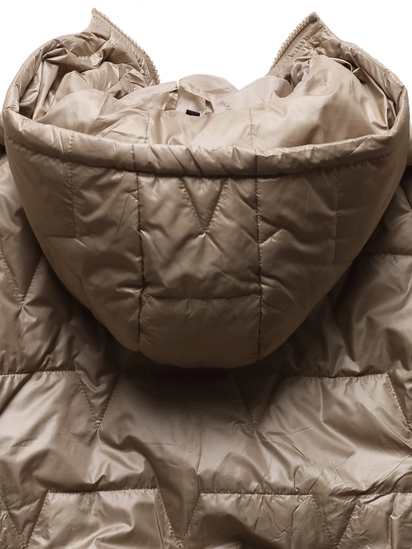 Beżowa pikowana damska kurtka z bocznymi rozcięciami