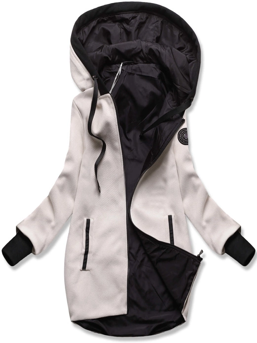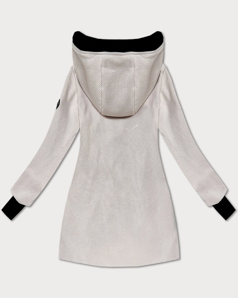 Beżowa damska kurtka przejściowa z kapturem w paseczki