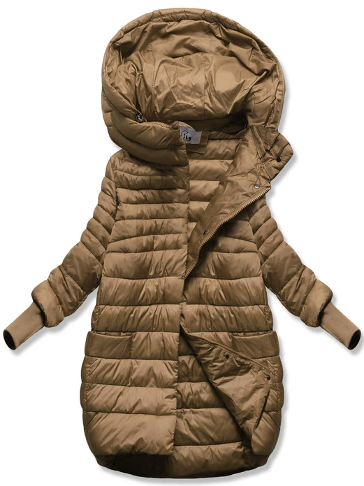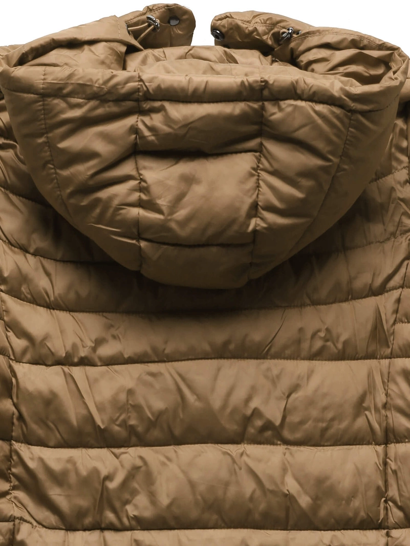Opinie o Karmelowa damska pikowana przejściowa kurtka dzianinowe ściągacze