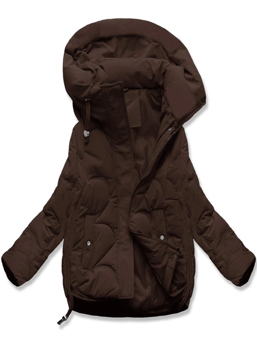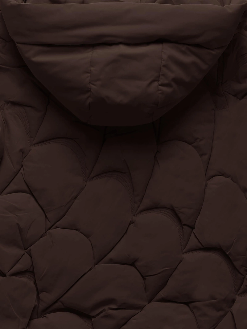 Czekoladowa damska kapitalnie pikowana kurtka z kapturem