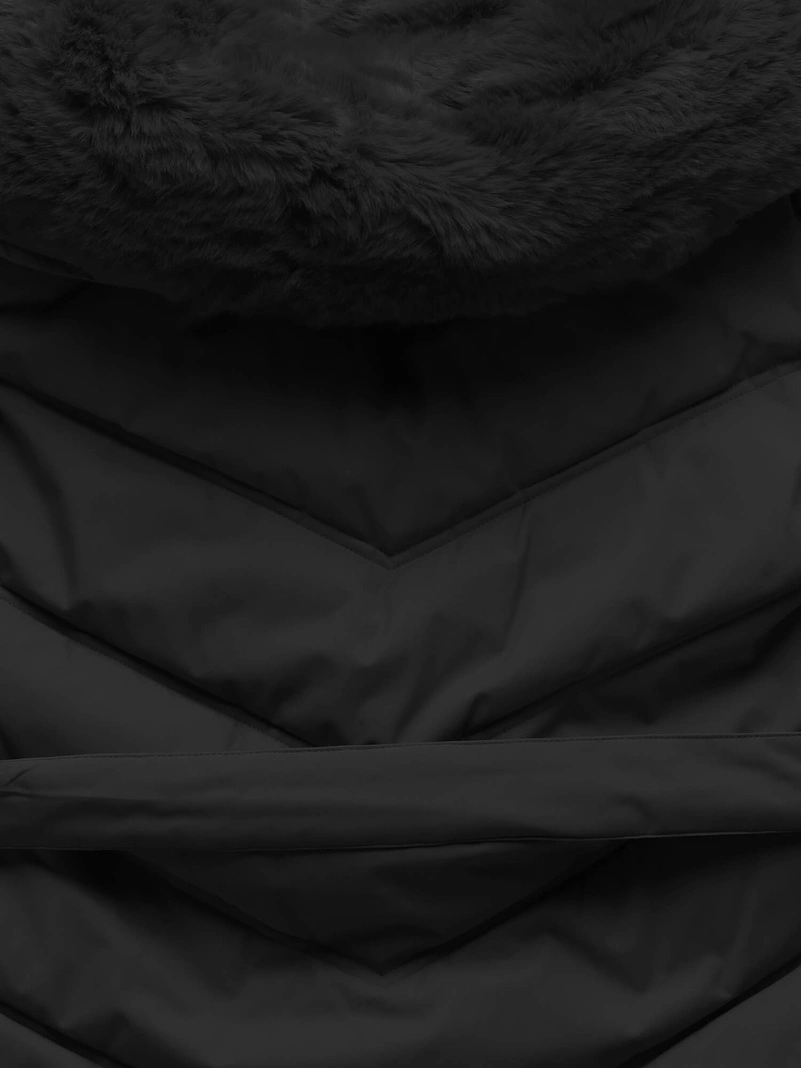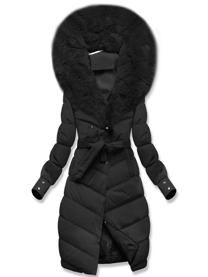 Czarna damska zimowa kurtka płaszczyk z futrzanym kołnierzem