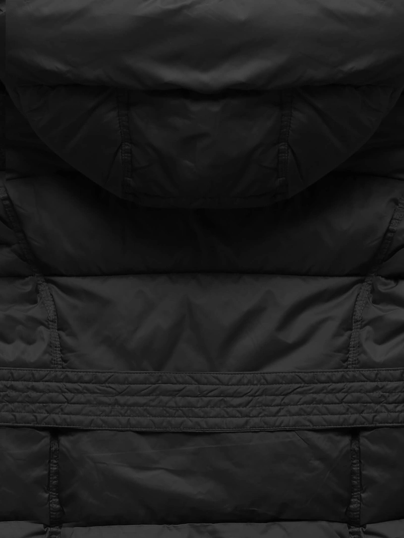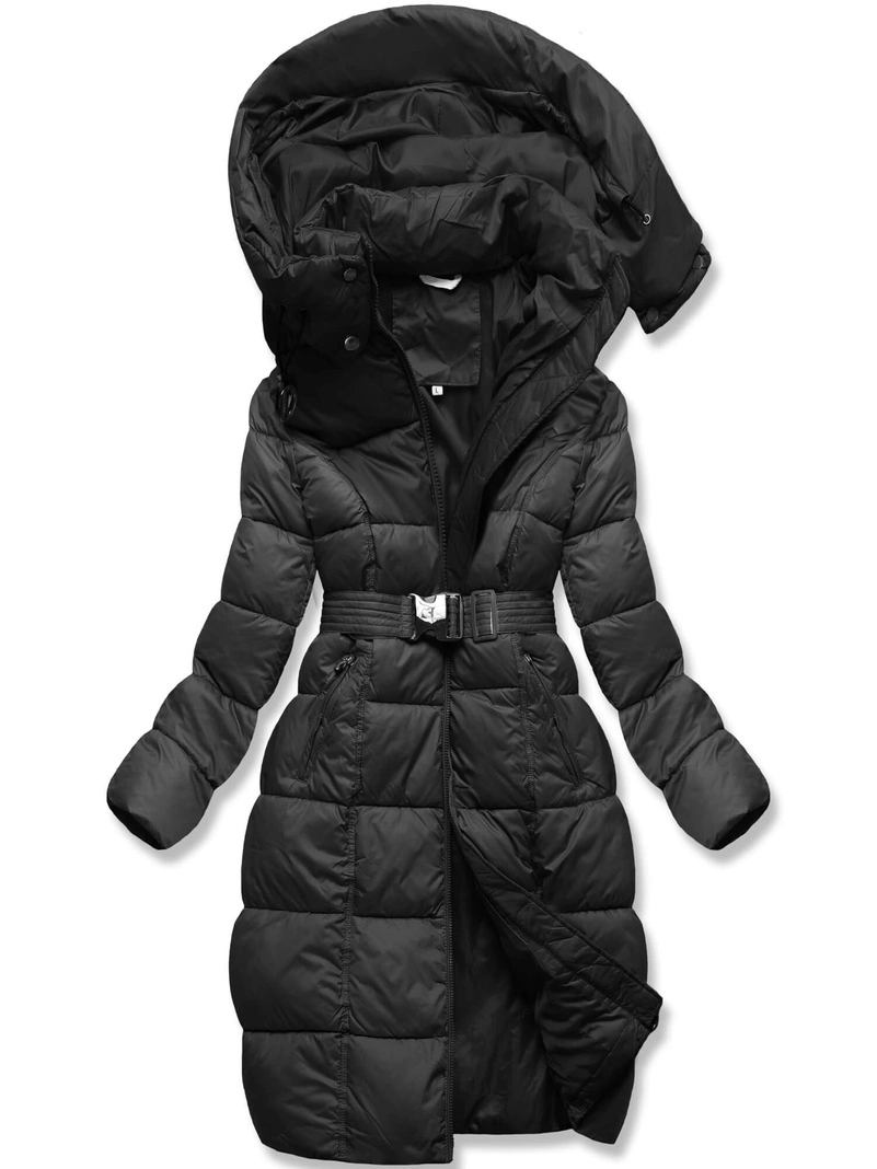 Opinie o Czarna zimowa damska kurtka pikowana z paskiem