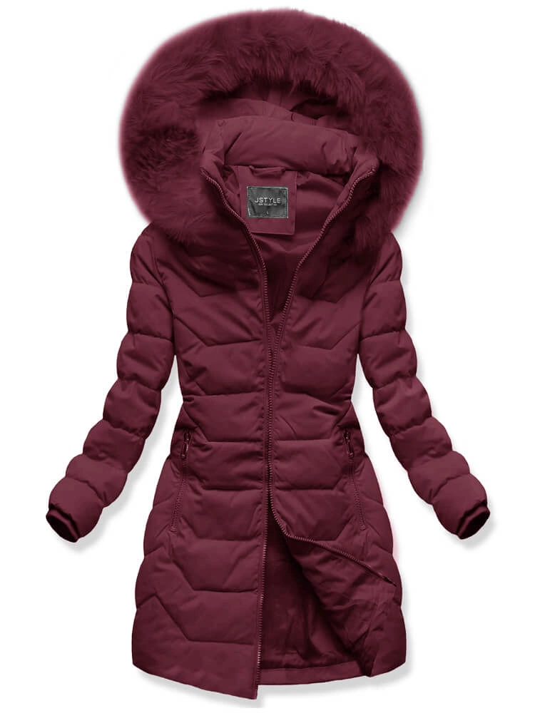 Bordowa fenomenalna zimowa kurtka z kapturem