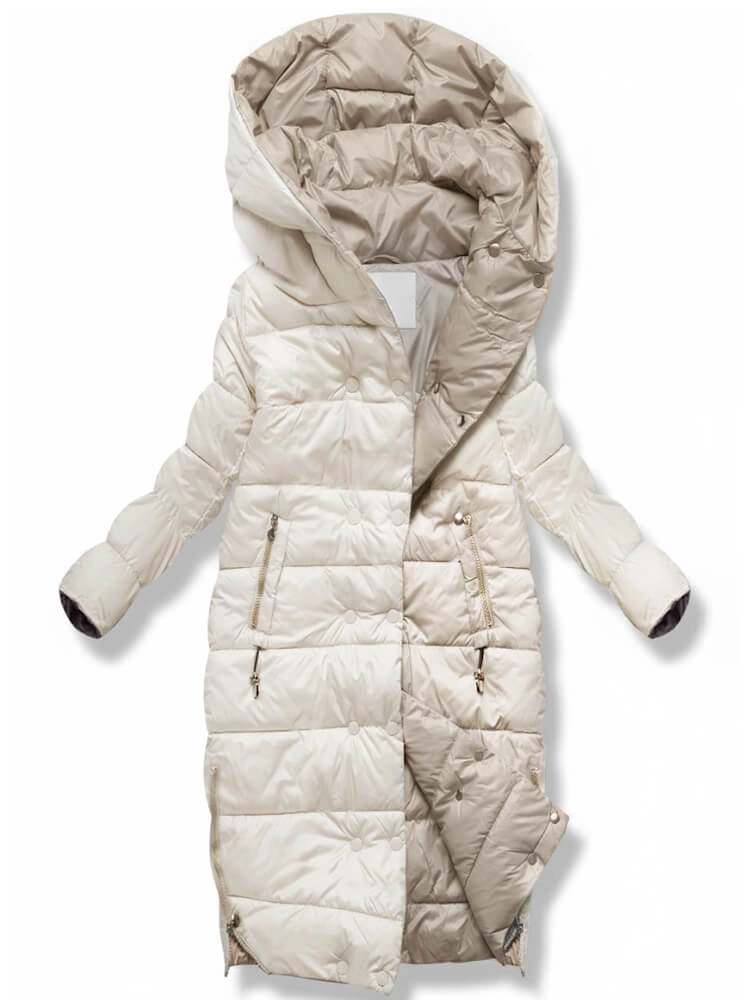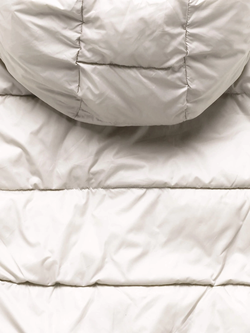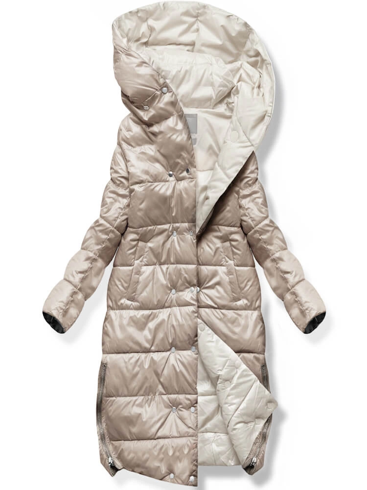 Ecru Beżowa dwustronna zimowa damska kurtka z kapturem