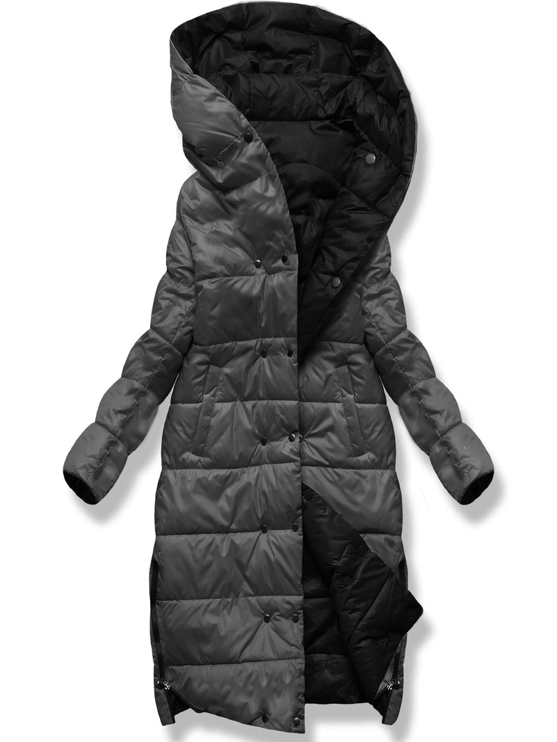 Czarno grafitowa damska kurtka pikowana z paskiem