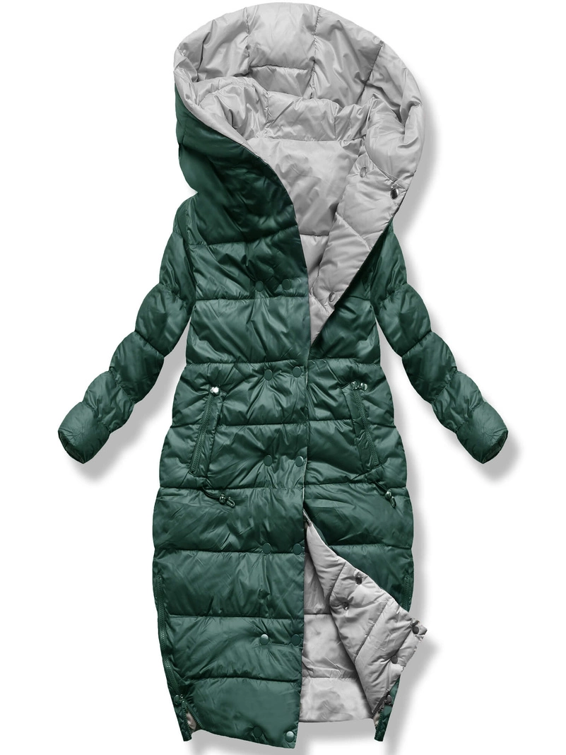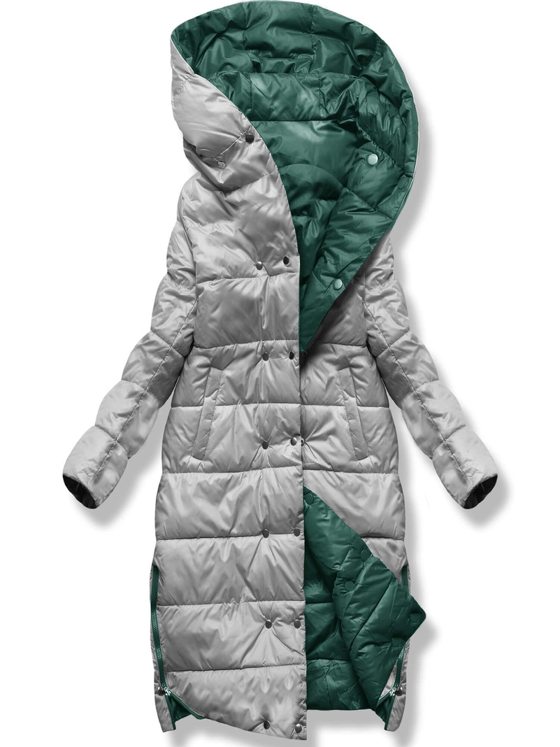 Zielono szara dwustronna zimowa damska kurtka z kapturem