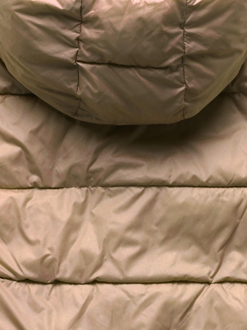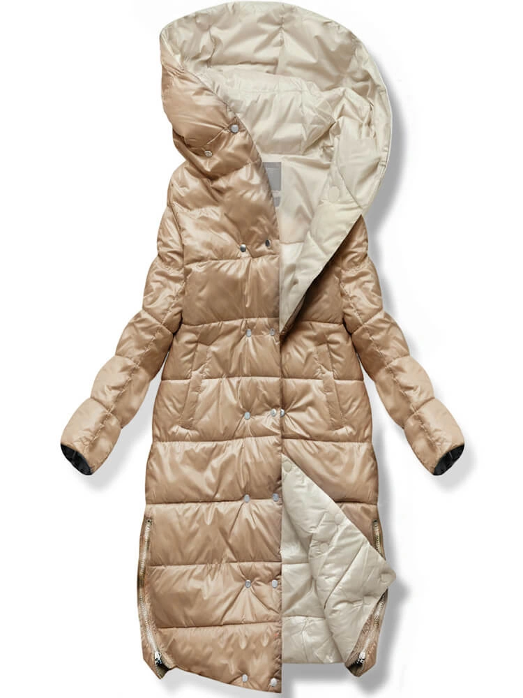 Beżowo brązowa dwustronna zimowa damska kurtka z kapturem