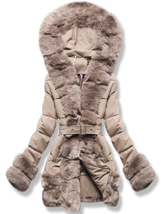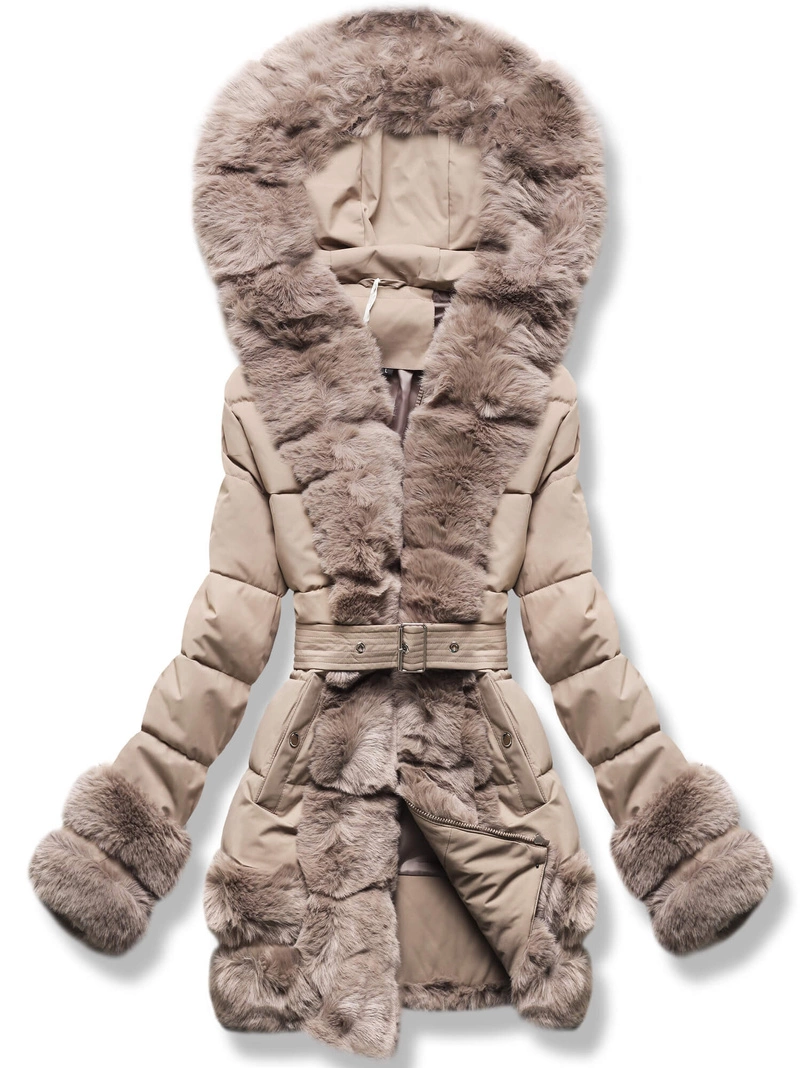 Beżowa damska kurtka z genialnym futrzanym kapturem